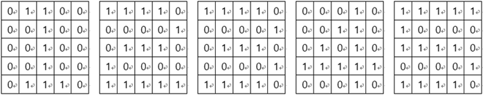 1에서 5까지 된 숫자를 구분하는 모델을 구현하겠습니다. 판독할 이미지는 다음과 같이 가로, 셀로 각각 5개의 픽셀로 구성된 5*5 크기의 숫자 이미지를 고려합니다.
