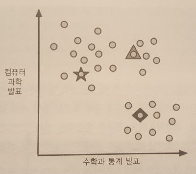 다음 그림은 K를 3개의 점이 임의로 선택한 경우입니다.