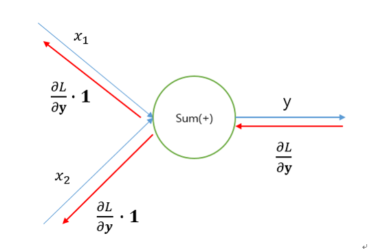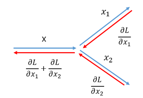 기울기는 순전파와 반대 방향으로 전파되며, 이 전파가 역전파입니다. 이 역전파는 정답과 비교하여 오차인 L(Loss)를 반환하고 이 그래프에 대해 각 변수에 대해 편미분을 수행하여 기울기를 구합니다.